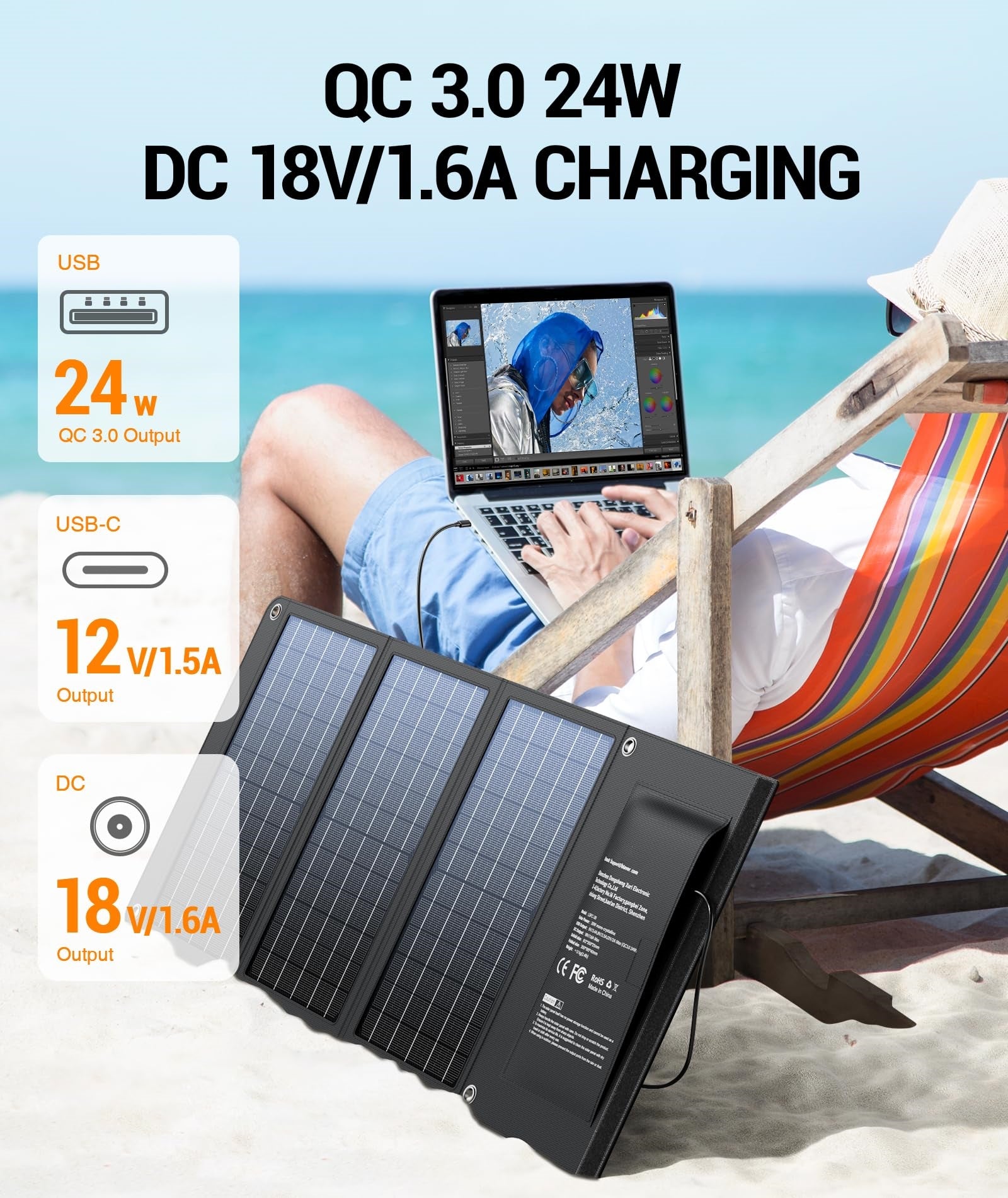Higher Conversion Efficiency: Made with monocrystalline silicon solar cells, and using high-efficiency multi-layered solar arrays, these solar panel chargers convert up to 24% of solar power into free energy, providing significantly better performance than other conventional panels.