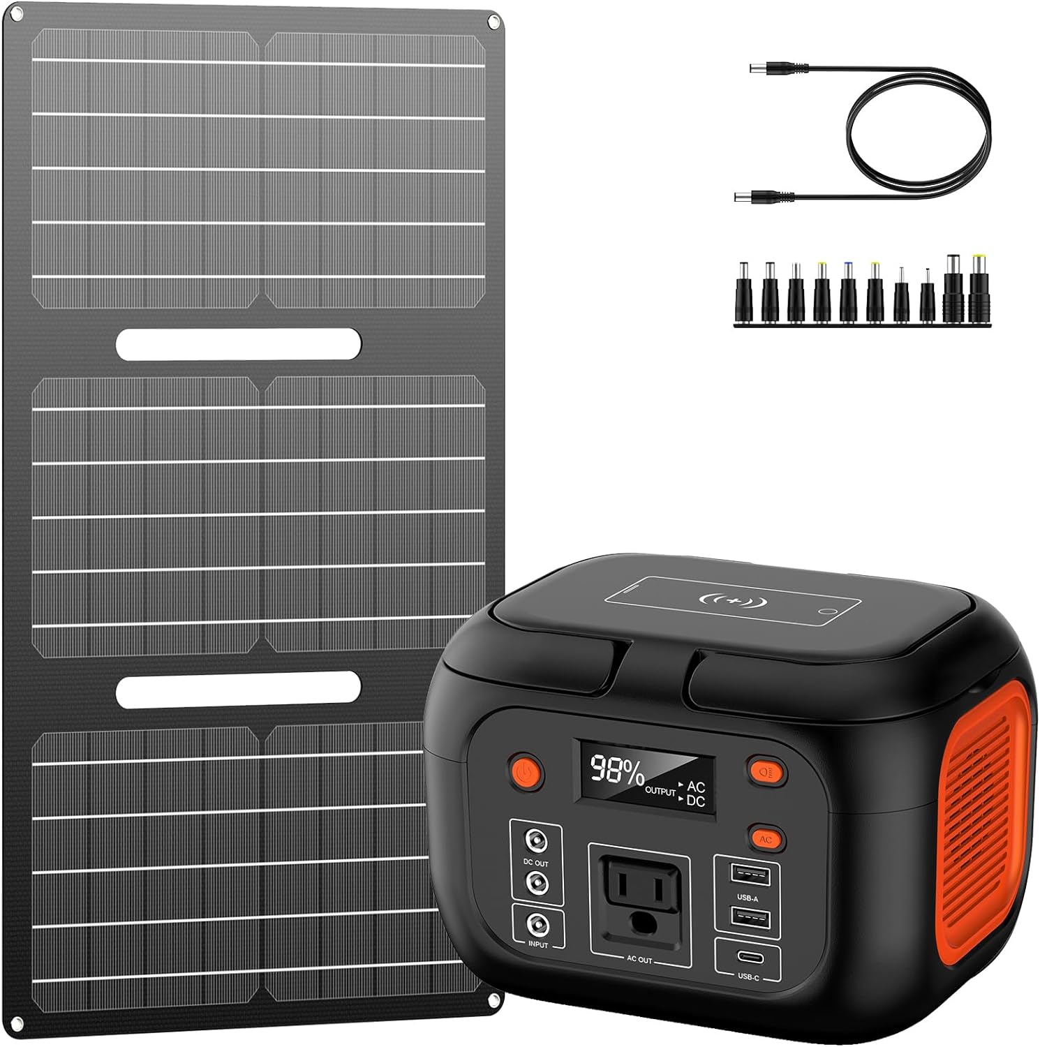 • 【Multi-function Outputs Power Banks】The solar power stations with 2*USB A output (5V/3.1A), 1*USB C output(5V/3A 9V/2A), 1*AC output Max 150W, 2*DC port output (9V~12.6V 10A, MAX), 1* wireless charging for phone. Supports charging for 6 devices same time. Power your laptop, tablet, phones, lights, fans, CPAP machine, drones, mini refrigerator, speaker, camera and more at any time.