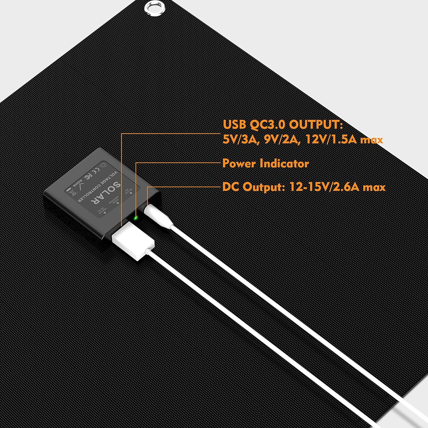 • PACKAGE AND CUSTOMER SERVICE: 1* 40 Watt Foldable Solar Panel; 1* 10-in-1 Connect Cable; 1* DC-to-DC Cable; 1*User Manual. We offer 7*24 rapid customer service, 30 days money-back guarantee, lifetime technical support