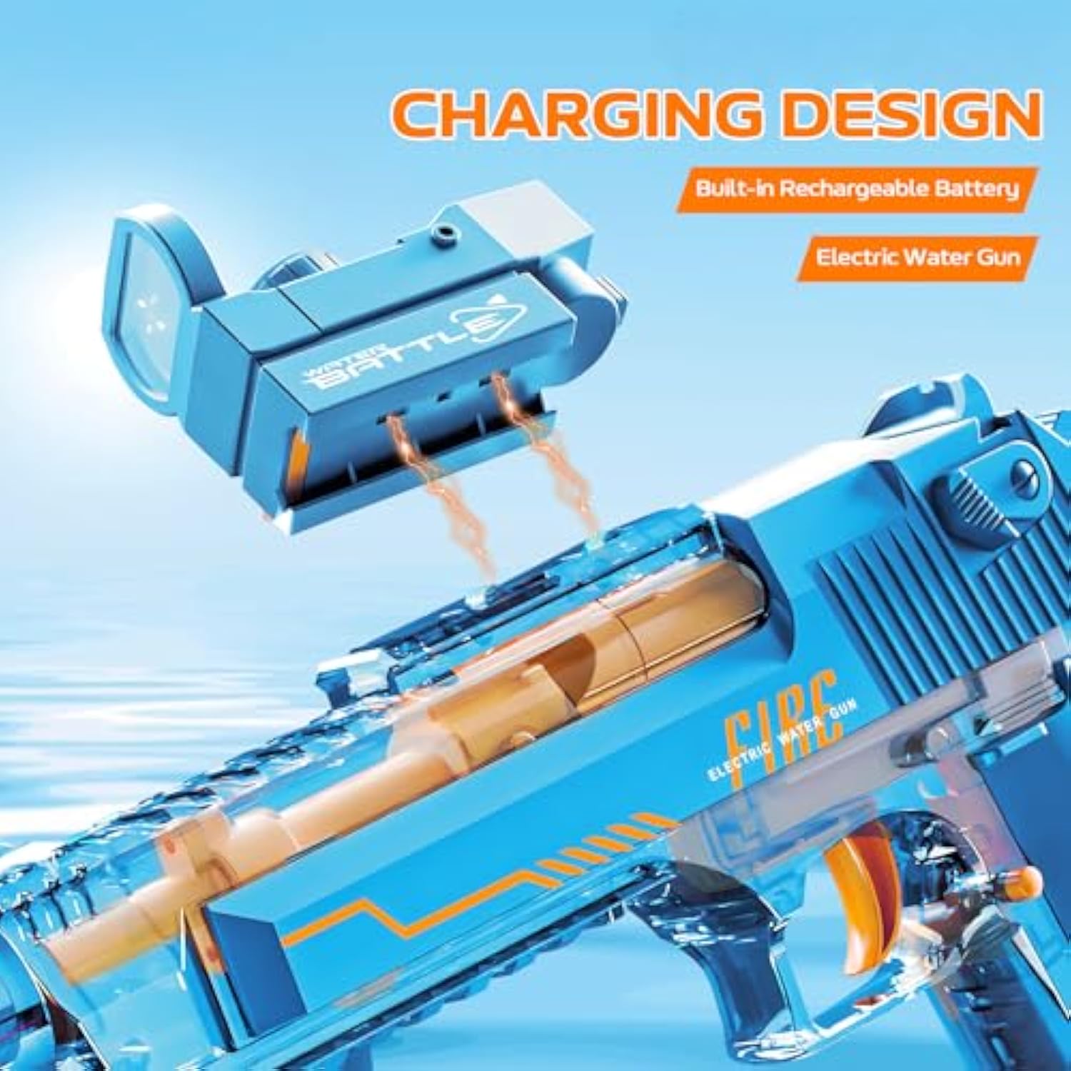Blue Electric Water Gun for Adults Kids, Automatic Squirt Watergun Pistol with Led Lights, Summer Outdoor Pool Beach Party Toys