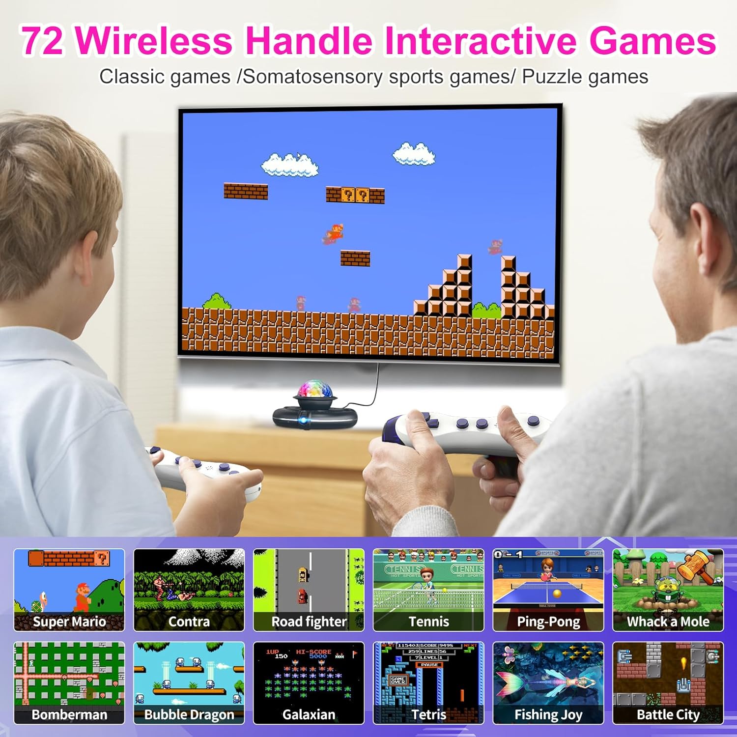 • 💖【FAMILY GAMES FOR KIDS AND ADULTS】You can play with your children, complete parent-child interactions, playing ball, running, chess, and learning together will make the relationship between you and your child closer, exercise children's reactions and physical coordination. and you can also use it to complete yoga moves or play games to meet your any entertainment needs. Double wireless controller let you to share happiness with your family and friends.