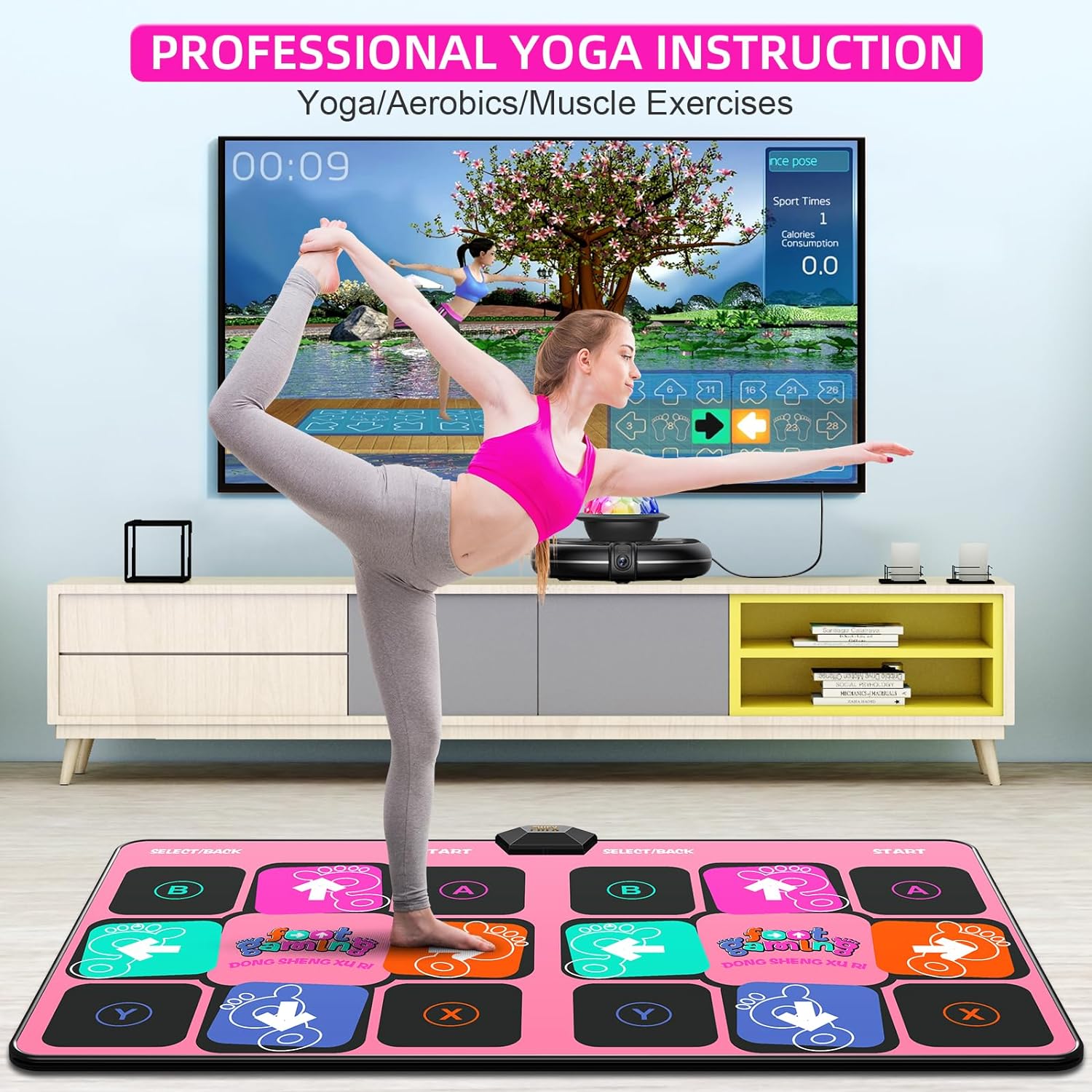 • 🎵【HDMI WIRELESS DANCE MAT】 The FWFX dance mat includes two dance modes: MTV and cartoon. Modes such as 4-key, 6-key, hands & feet, yoga, motion-sensing gamepad and 3D camera sensing are supported, single and double modes. The upgraded dance mat comes with 86 hot dance songs, 37 handle somatosensory interactive games, 9 camera games and 3 running games and 45 sets of yoga fitness and aerobic exercise videos to help you do exercise and find more fun.