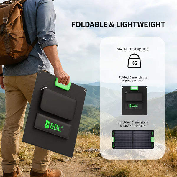 EBL Solar Apollo 100W Portable Solar Panel: Upgraded for 240/300/330W/500/1000/1500/2000 Power Station, with Adjustable Kickstand and Parallel Cable, Waterproof IP65 for Outdoor Camping Hiking RV Trip