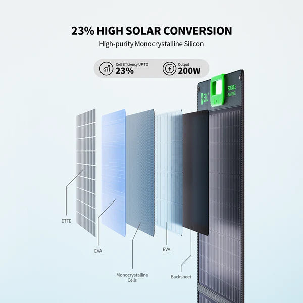 High-Efficiency Solar Cells: Advanced monocrystalline cells with a 23% conversion rate for superior performance in sunlight.