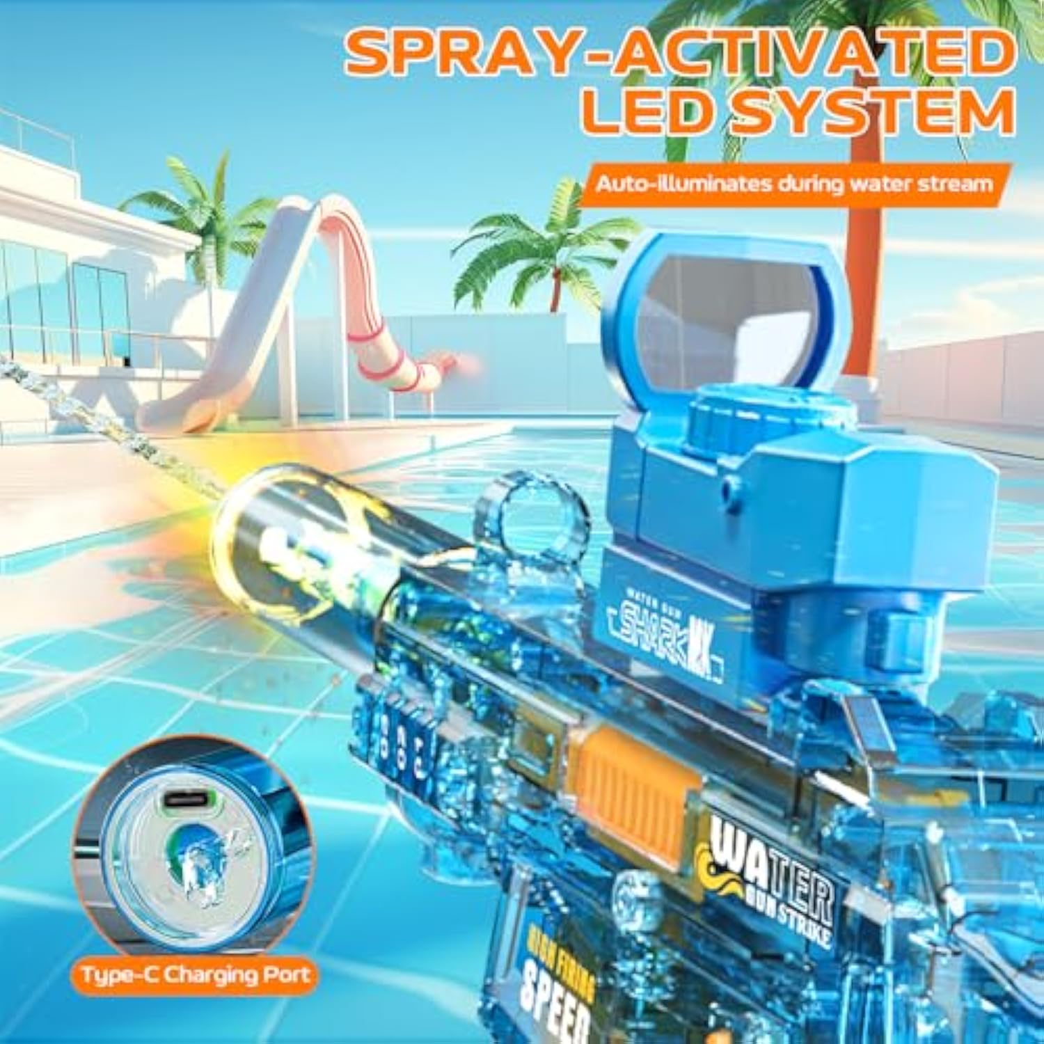 • Glowing Fun with Every Spray – When you press the button, the nozzle lights up as the water sprays out. It’s super fun to see the light! The nozzle is designed to glow only when water is flowing through it. No water, no light—simple and safe! It’s perfect for kids and grown-ups to enjoy together.