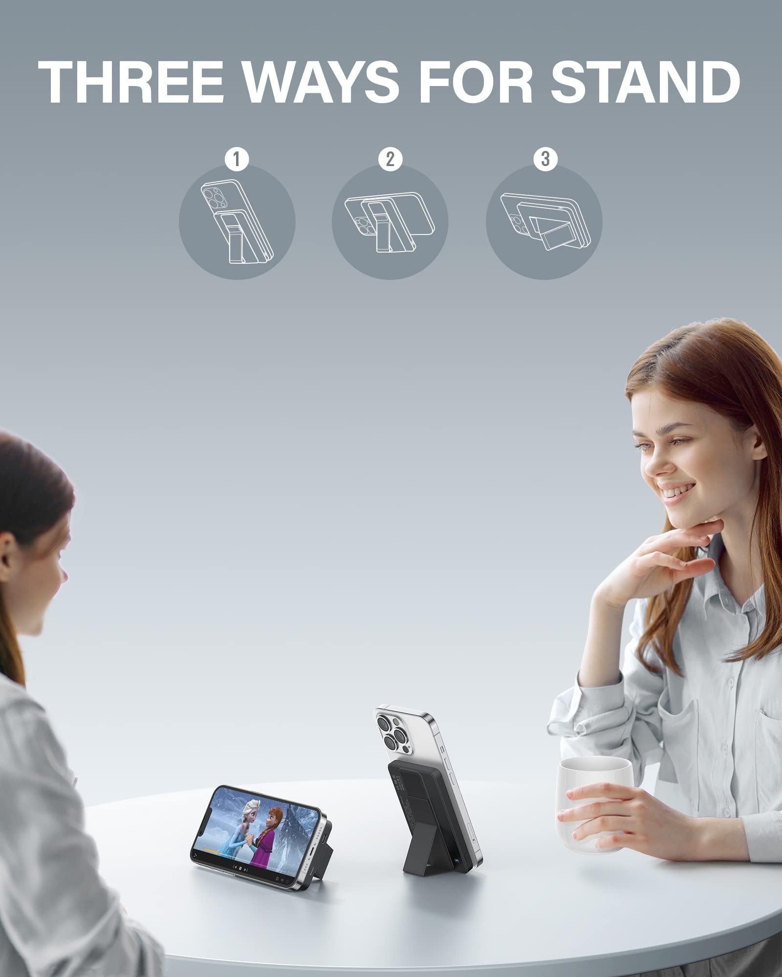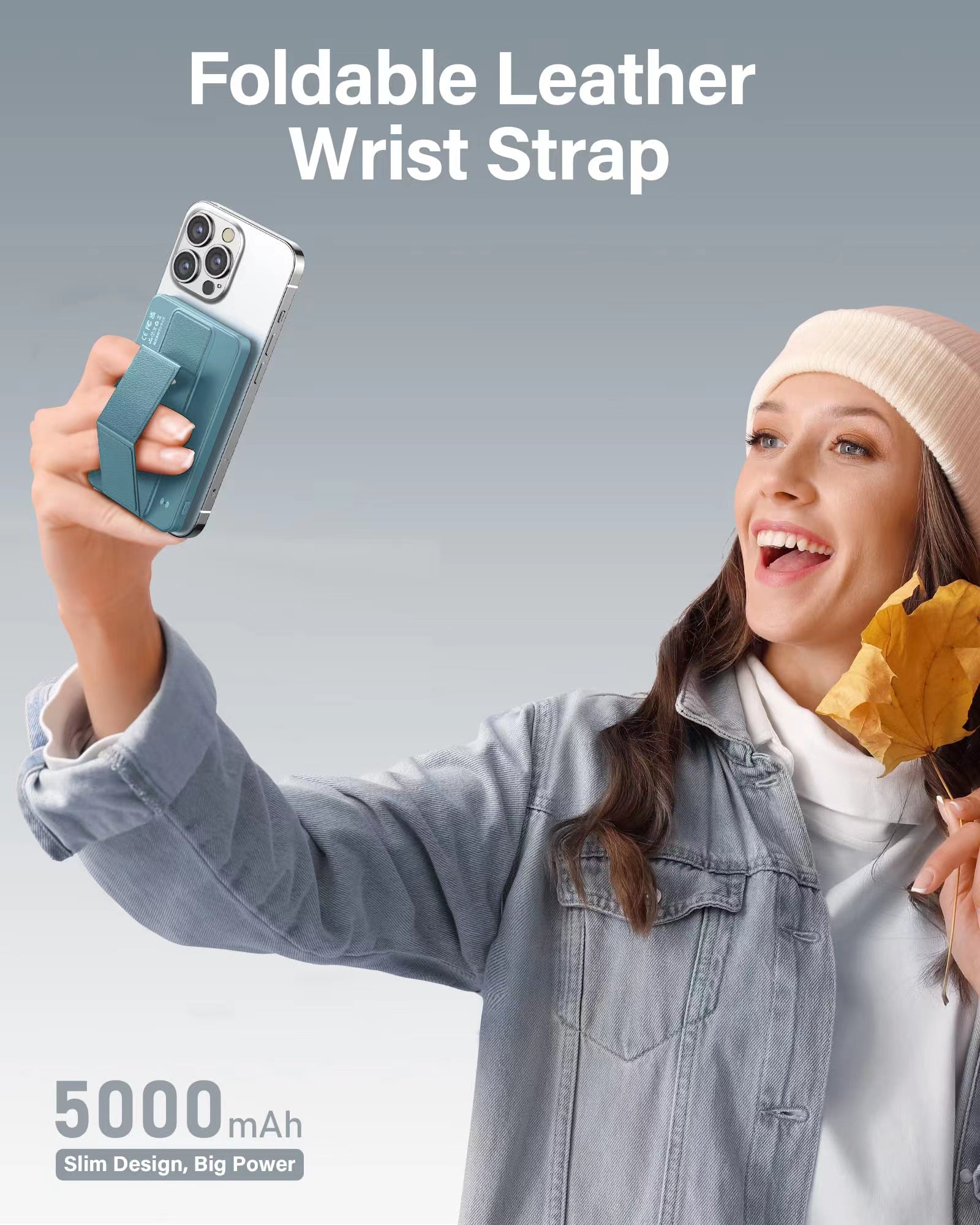 • [Magnetic Wireless Charger with Foldable Stand]: The magnetic power bank is equipped with a unique foldable leather stand, which allows you to place your phone vertically or horizontally, this foldable stand can also be used as a finger buckle, with these designs you can use the power bank comfortably anytime anywhere