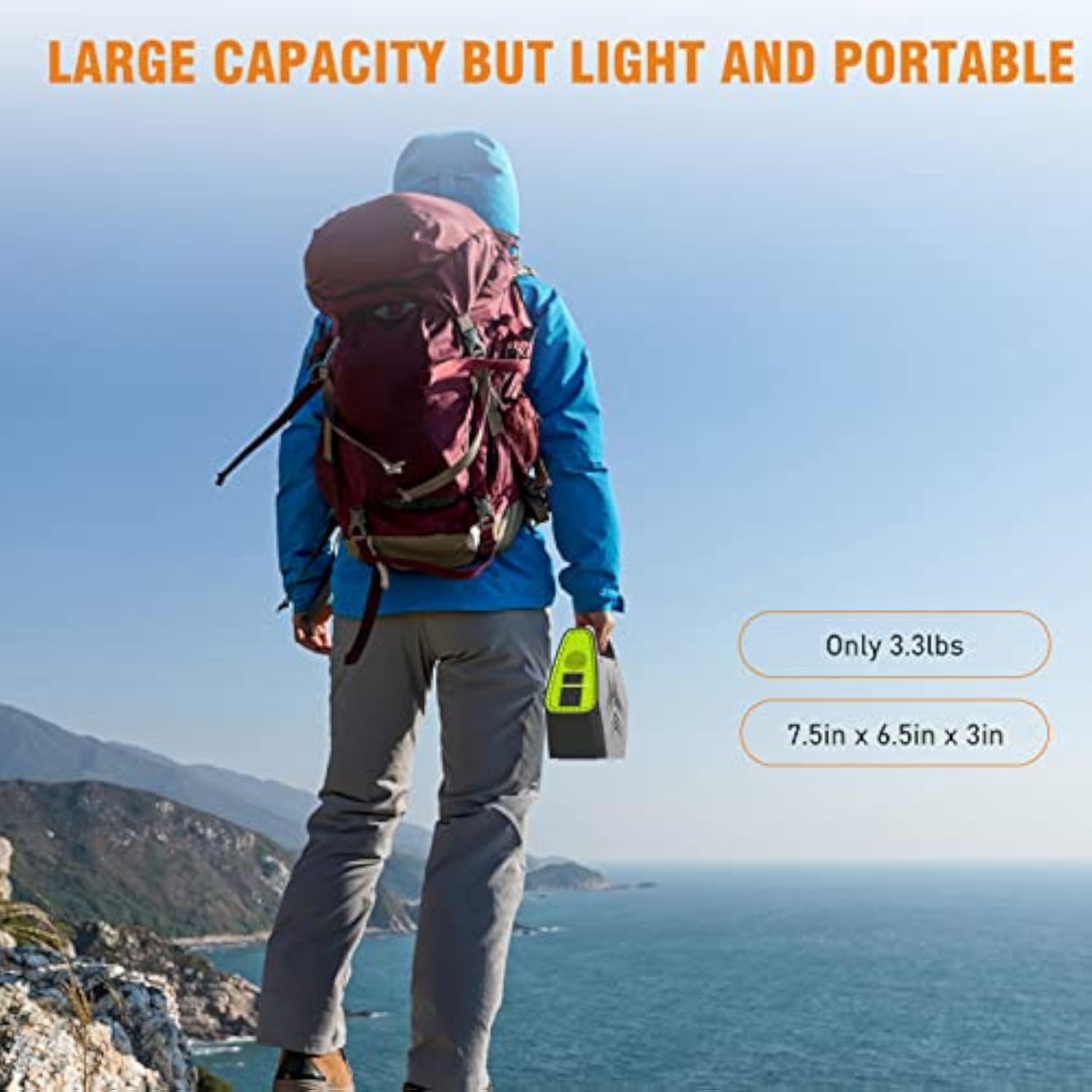 • 【High Capacity & Small Portable Size】 ENOFLO portable power stations is equipped with high power capacity 97Wh 26400mAh durable lithium battery. The size of power banks is 7.08 x 2.56x 6.5 inch and the weight is only 3.3lb. Very suitable for outdoor camping, traveling, RV trip, home use, deals with power outages, office emergency and Christmas lights.