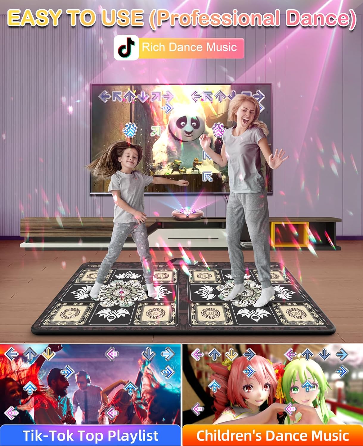 • 🎵 【WIRELESS DANCE MAT】Our cutting-edge dance mat, equipped with the latest AI chips, provides a magical dance game experience. It comes with popular TikTok dance music and professional choreography. The anti-wrinkle flannel game pad has a non-slip bottom design for safety. with built-in sensors for precise motion tracking and customizable settings for different dance styles, this gift combines excitement and fun, making it an ideal choice for both kids and adults. Elevate any event with this interactive masterpiece, turning every step into a dance and every dance into a cherished memory.